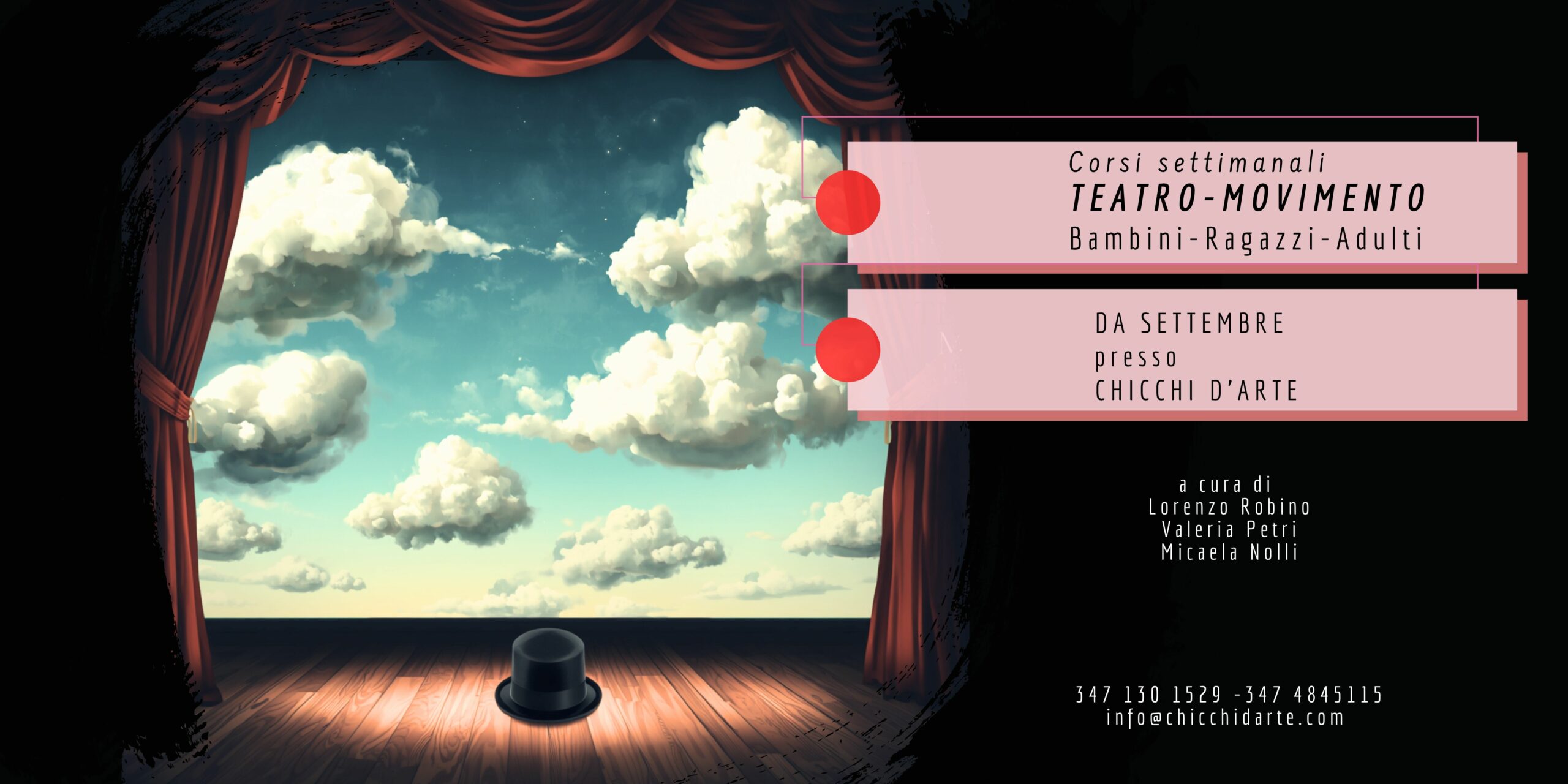 Collabora attivamente con gli istituti scolastici di ogni ordine e grado proponendo laboratori di TeatroMovimento, Danza Creativa e Artiterapie.